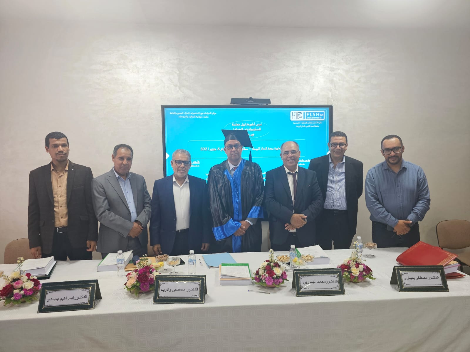 تكوّنت لجنة المناقشة من نخبة من الأساتذة الباحثين، برئاسة الدكتور مصطفى وادريم، وبتأطير ومواكبة علمية من الدكتور مصطفى يحياوي، إلى جانب الدكتور محمد عبد ربي من نفس الكلية. كما شارك في المناقشة كل من الدكتور إبراهيم بديدي والدكتور موسى المالكي، عن كلية الآداب والعلوم الإنسانية بالرباط.