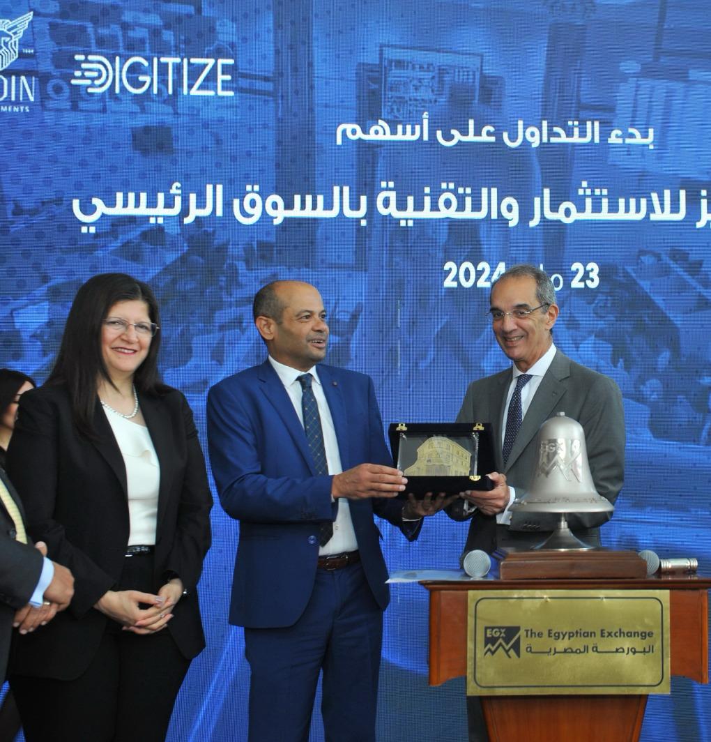 نظمت شركة “ديجيتايز للاستثمار والتقنية” (DGTZ.CA) يوم الخميس الموافق 23-مايو-2024، مؤتمرًا صحفيًا وذلك ضمن فعالية “قرع الجرس” التي أقامتها البورصة المصرية احتفالا بانتقال الشركة من سوق المشروعات الصغيرة والمتوسطة إلى السوق الرئيسي.