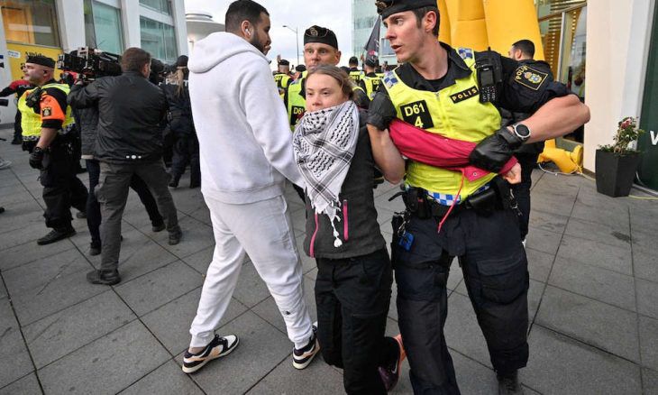 وقالت الناشطة السويدية والمدافعة عن البيئة غريتا ثونبرج، التي تم اعتقالها اثناء المظاهرات إنه “من المخزي وغير المقبول أن تسمح يوروفيجن لإسرائيل بالمشاركة، في الوقت الذي ترتكب فيه حالياً إبادة جماعية، فهم قادرون على حظر روسيا ولكن ليس إسرائيل”.