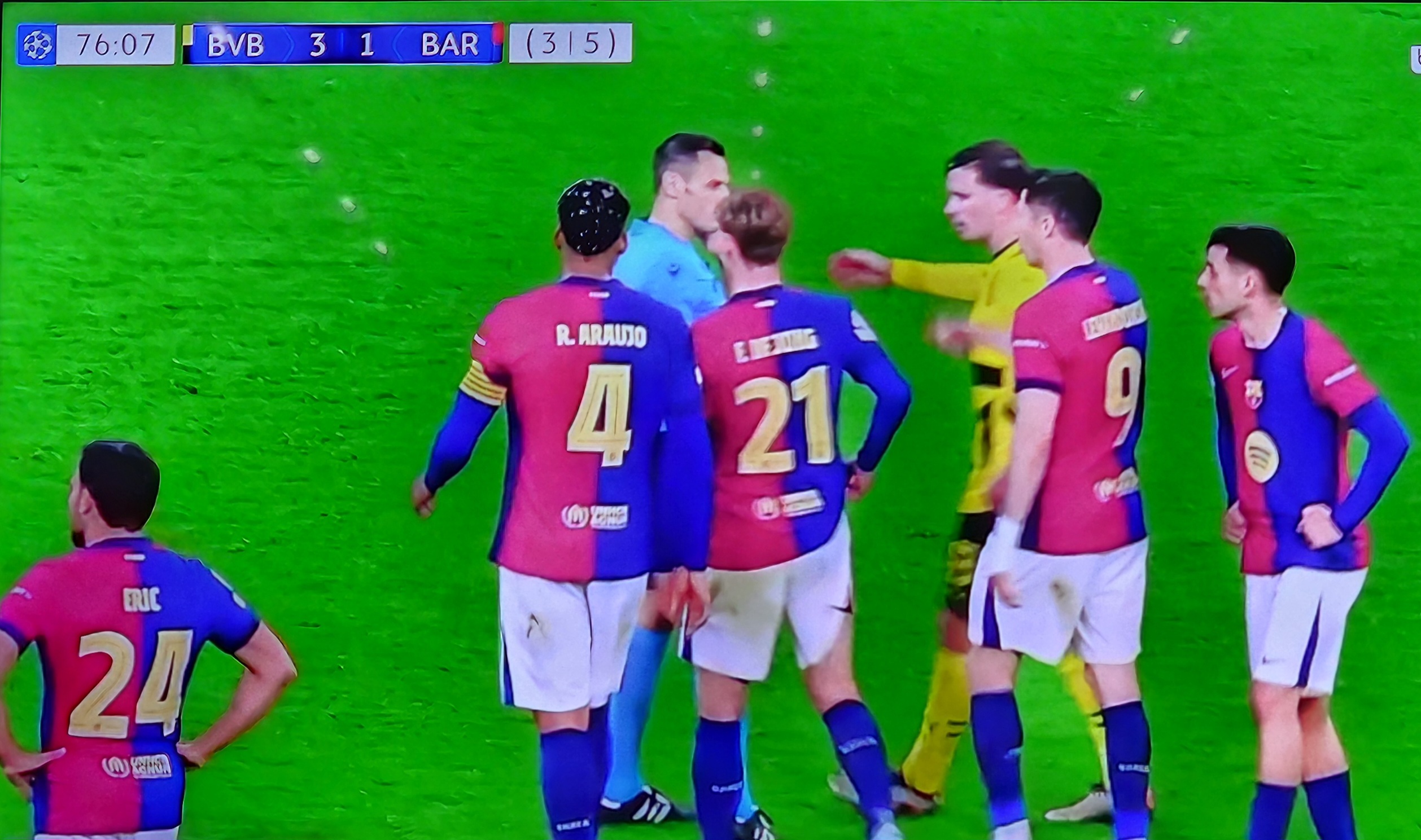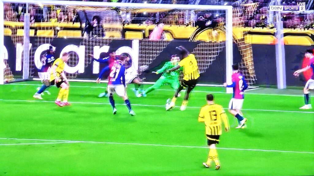 أما مواجهة الإياب، التي أقيمت في ملعب “سيغنال إيدونا بارك” يوم 15 أبريل، فجاءت حماسية بكل المقاييس، حيث حاول الفريق الألماني العودة في النتيجة مدفوعًا بجماهيره الغفيرة. وتمكن المهاجم سيرهو جيراسي من تسجيل ثلاثية “هاتريك” (د11 من ركلة جزاء، د49، د76)، لكن هدفًا عكسيًا من المدافع رامي بنسبعيني في الدقيقة 54 لصالح برشلونة منح الضيوف الأفضلية التي احتاجوها لضمان التأهل، رغم الخسارة 3-1.