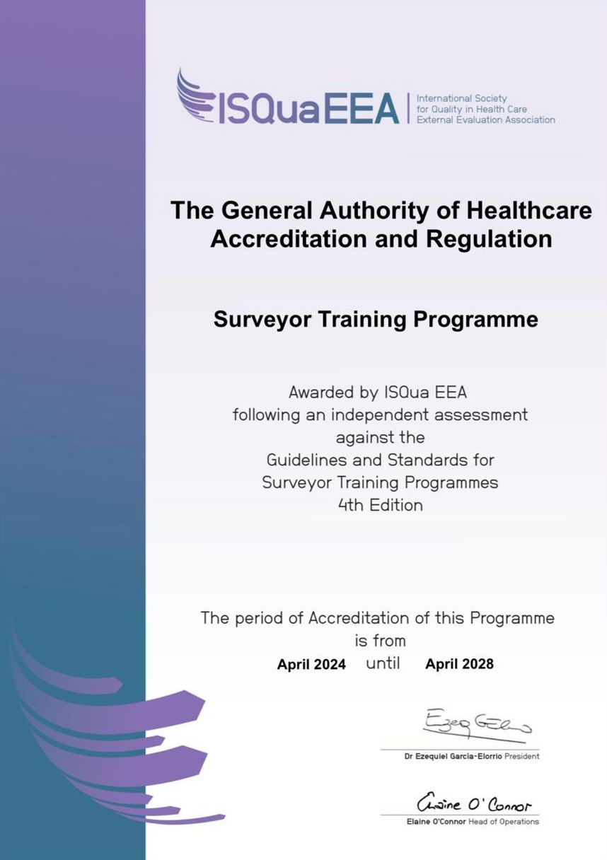 بنسبة نجاح 96%.. برنامج تدريب المراجعين يحصل على الاعتماد الدولي من الجمعية الدولية لجودة الرعاية الصحية (ISQUA)