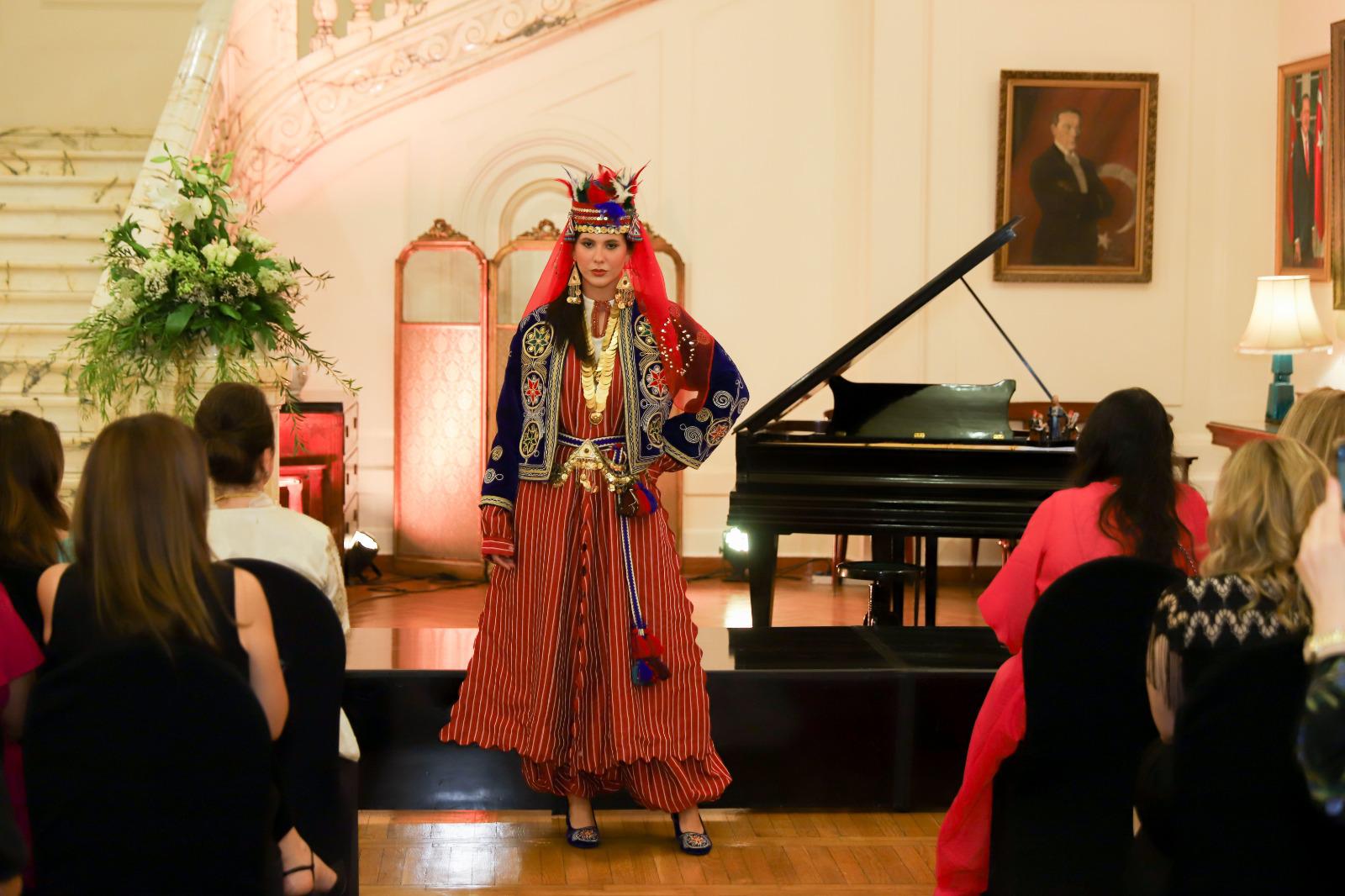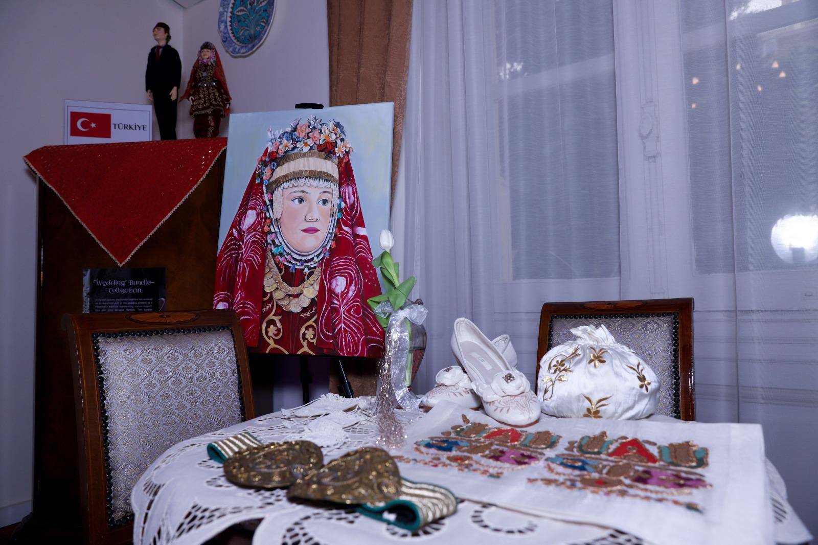 وفي هذا السياق، عرضت السفارة التركية في القاهرة فساتين زفاف تقليدية وفساتين زفاف من كل منطقة في الأناضول، مصممة بحرفية عالية.