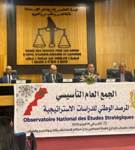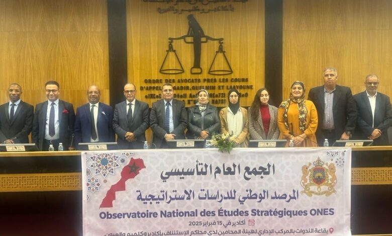 في خطوة تهدف إلى تعزيز الدور المدني في الدفاع عن القضايا الوطنية وتعميق التحليل الاستراتيجي، انعقد يوم السبت 15 فبراير 2025 بالركب الاداري لهيئة المحامين لدى محاكم الإستئناف بأكادير وكلميم والعيون بأكادير ، الجمع العام التأسيسي للمرصد الوطني للدراسات الاستراتيجية. وقد أُسندت رئاسة هذه الهيئة البحثية إلى الخبير في الدراسات الأمنية والاستراتيجية، الدكتور محمد طيار، كما ثم انتخاب الدكتور الحسين بكار السباعي الحقوقي والمترافع البارز عن قضية الصحراء المغربية نائبا للرئيس ومنسق عام للمرصد ، والدكتور أحمد أبوطاها نائبا ثانيا .كما ثم انتخاب السيادات والسادة : الدكتور رشيد الكيحل كاتباوعاما ، تنوب عنه كل من الدكتورة هاجر زفزاف والاستاذ حسن كرياط، فيما تولت الاستاذة عائشة بن هموش أمانة المال بمساعدة الدكتور امبارك حاجب وعبد اللطيف الحسناوي. كما ضمت لائحة المستشارين مكلفين بمهام أسماء بارزة مثل الدكتورة فاطمة ملوكي، والاستاذة رجاء حليلة، والاستاذ الحسين أولودي، والاستلذ عبد المجيد الكارح، والاستاذ،فؤاد الخنشافي، و الأستاذة لينة لوكيلي.