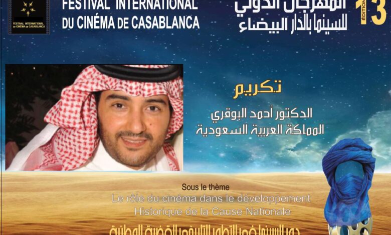 تكريم الدكتور أحمد البوقوي في الدورة 13 للمهرجان الدولي للسينما بالدار البيضاء
