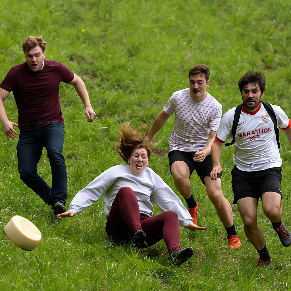 في مشهد يثير الدهشة ويجسد روح المغامرة الشعبية، عاد مهرجان “دحرجة الجبن” في إنجلترا خلال مايو 2025 ليؤكد مكانته كواحد من أغرب وأشهر التقاليد البريطانية على الإطلاق. هذا الحدث الذي يُقام سنوياً على تل “كوبر” الشهير في منطقة غلوسترشير يجمع بين التقاليد العريقة والتشويق الحي، حيث يتدافع المشاركون من جميع أنحاء العالم خلف قرص دائري من جبن “دبل غلوستر” يتدحرج بسرعة جنونية من أعلى منحدر يبلغ طوله 180 متراً. ومع زاوية ميل خطيرة تبلغ نحو 50%، يصعب على أي متسابق الحفاظ على توازنه، ما يجعل المشهد أقرب إلى سقوط حر جماعي أكثر منه سباقاً رياضياً.