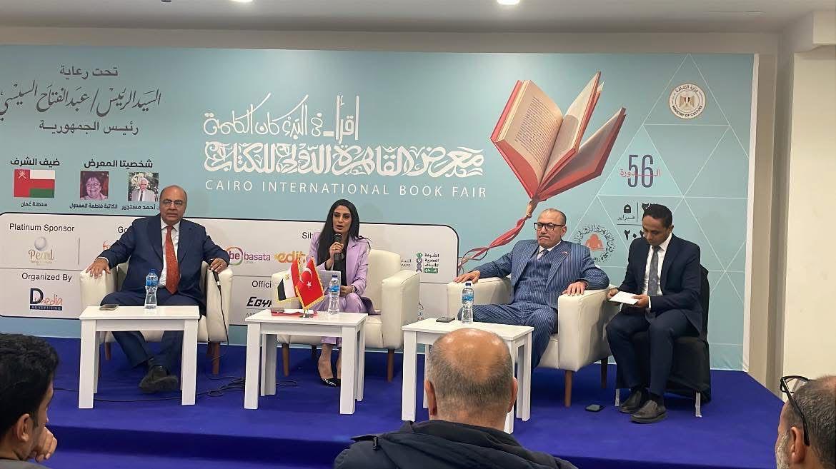 – السفير صالح موطلو شن: أولاً، أود أن أشكر وزارة الخارجية وإدارة معرض القاهرة الدولي للكتاب على جمعنا في هذه المناسبة. أجدها فرصة قيمة ولها معنى جدًا.
