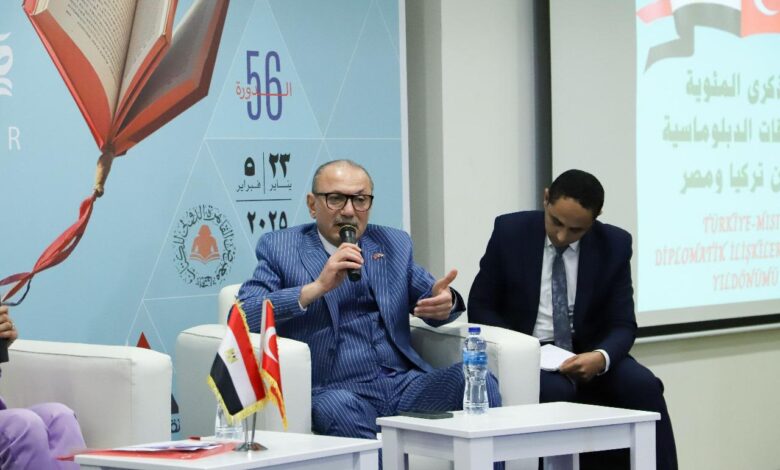 تحدث “صالح موطلو شن” سفير تركيا في القاهرة، وسفير مصر السابق في أنقرة “علاء الحديدي”، خلال ندوة نُظمت من قبل وزارة الخارجية على هامش معرض القاهرة الدولي للكتاب؛ نُظمت الندوة بمناسبة الذكرى المئوية لتأسيس العلاقات الدبلوماسية بين مصر وتركيا.
