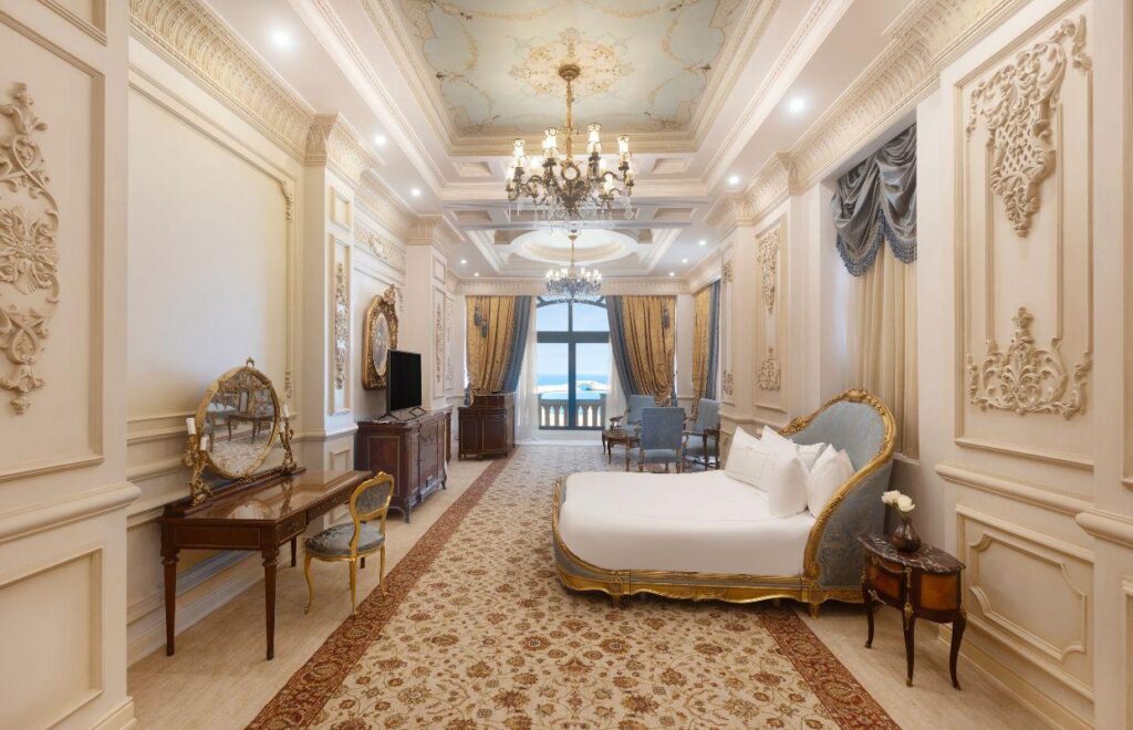 ويضم الفندق أجنحة ملكية وغرفًا فندقية مطلة على البحر، ومطاعم عالمية، ومركزًا للعافية والسبا، ونادٍ رياضيًا، إلى جانب باقات ترفيهية تشمل عروضًا فنية وبرامج للأطفال.
