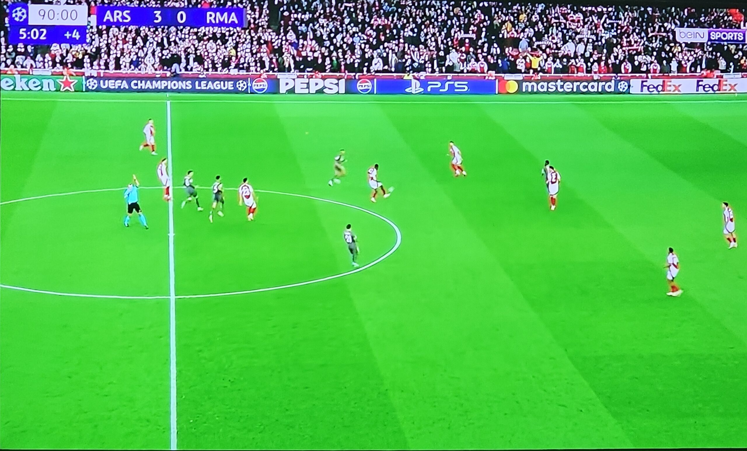 بعدها بخمس دقائق فقط، عزز الإسباني مايكل مورينو النتيجة بهدف ثالث بعد هجمة منظمة، استغل فيها سوء التمركز الدفاعي للفريق الملكي، ليسجل بسهولة ويُحكم قبضة المدفعجية على اللقاء.