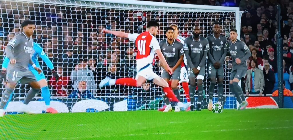 النجم الإنجليزي ديكلان رايس كان بطل السهرة دون منازع، بعدما سجل هدفين رائعين من كرتين ثابتتين، حيث نفذ ضربتي خطأ بإتقان تام في الدقيقتين 58 و70، سكنت الأولى الزاوية اليسرى والثانية الزاوية اليمنى للحارس تيبو كورتوا، الذي عجز عن التصدي لهما رغم محاولاته.