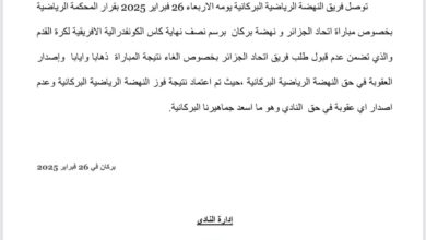محكمة التحكيم الرياضي رفضت طلب اتحاد العاصمة الجزائري وصادقت على نتيجة المقابلة، معتبرة أن المقابلة التي لعبتها نهضة بركان بقميص…
